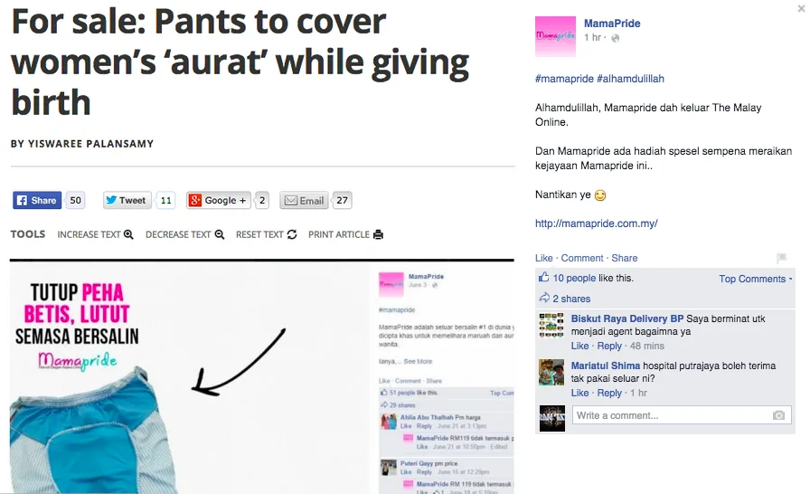 And in today’s “Strange Findings“, a number of local Facebook users discovered the existence of special maternity pants. How special is it? Well, let’s just say that you won’t be able to see it in the normal market because this is the kind that will cover women’s “aurat” while in labour.