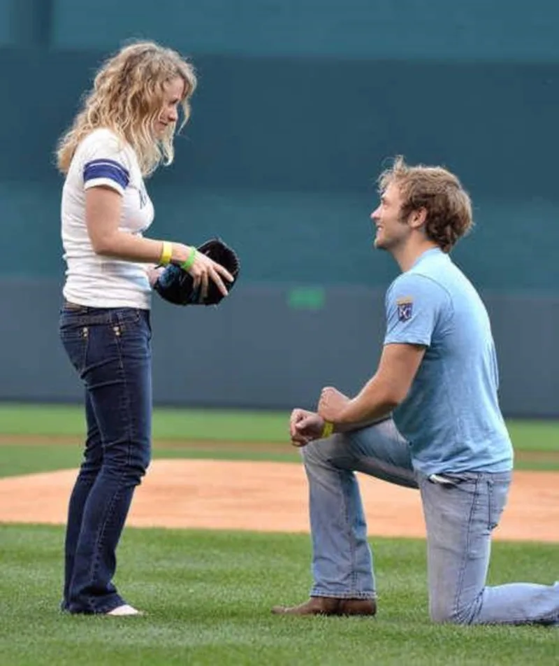 She donated one of her kidneys to her boyfriend on Valentine’s Day. On Tuesday, she had a wonderful surprise when he proposed while they were at a baseball game in Kansas city, in the US. Mr. Travis Spire-Sweet, 30, was selected to throw the first pitch at a Kansas City Royals home game and his girlfriend, Miss Taesha Benson, 32, was on the field to catch it, the Daily Mail reported.