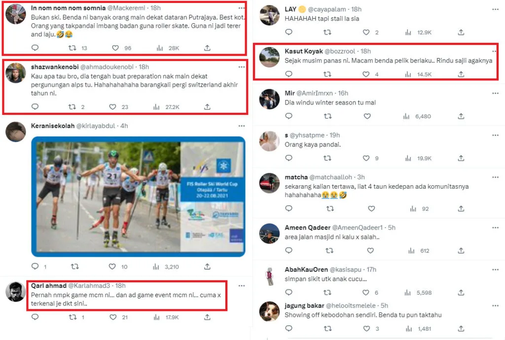 As it turns out, those were apparently roller skis, which are similar to snow skis but meant for preparing athletes for cross country skiing. “(I’ve) seen a game like this, and there are events like this,” one comment read. “It’s just not known here.” Another said: “It’s not skis. Many people do this near Dataran Putrajaya. (It’s fun apparently.) People who don’t know how to balance their bodies use roller skates. Using this is (great) and fast.”