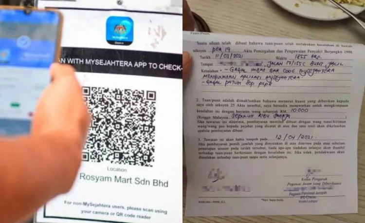 For what reason he was compounded, you ask? As seen in the photo of the letter of summon shared on the Facebook page of Info Roadblock JPJ/Polis, the individual “failed to scan the MySejahtera QR code in addition to flouting CMCO SOPs.” Additionally, the man is required to pay the compound by or on 12th April 2021.