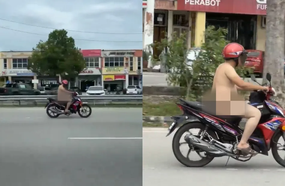 Twitter page @isusemasamalaysia posted a video submitted to them by an onlooker showing a man riding his motorcycle while wearing nothing but sandals and a helmet. According to the video’s caption, the incident took place at the AMJ (Alor Gajah–Melaka Tengah–Jasin) highway nearby Taman Semabok Perdana, Melaka.