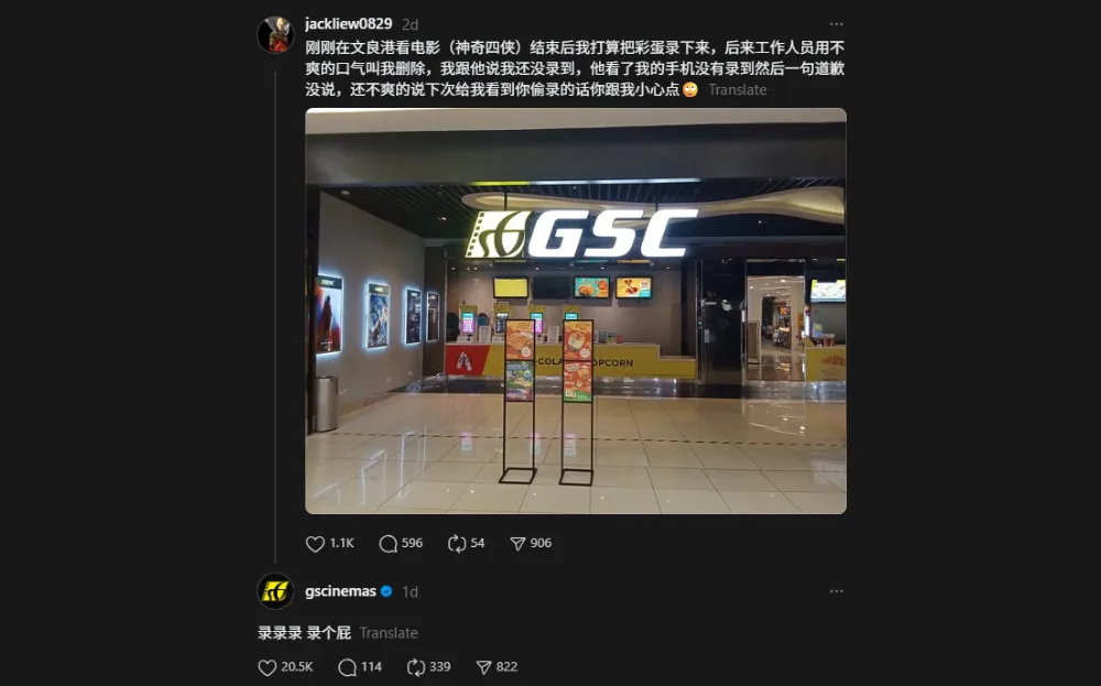 The incident involving the man, only known by his alias @/jackliew0829, transpired when he wanted to film the end credits of “Fantastic Four: First Steps” at GSC Wangsa Maju. He claimed that the cinema staff had approached him with a bad attitude and had warned him harshly for his actions. “I told him that I did not record anything yet. He checked my phone and saw that nothing was recorded, but did not even apologise. He just said, ‘If I catch you next time, you’d better be careful'”.