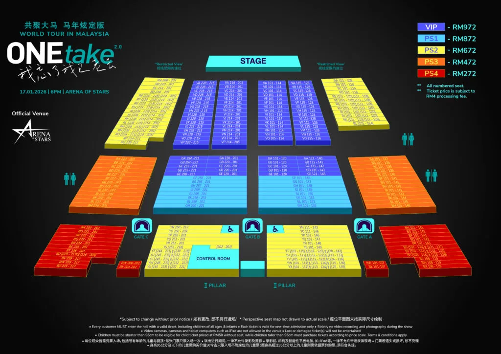 The upcoming “ONEtake 2.0 World Tour” will take place on 17th January 2026 (Saturday) at Arena of Stars, Resorts World Genting. Tickets range from RM272 to RM972, and are now available for purchase via rwgenting.com. Early bird discount of 25% is also available for VIP, PS1, PS2 and PS3 seats while stocks last.