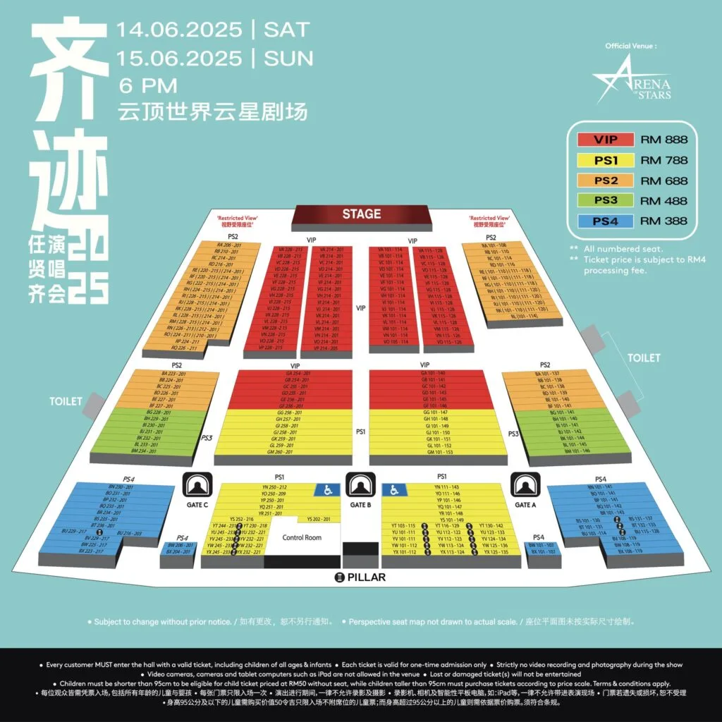 - Ticket Prices: VIP: RM888, PS1: RM788, PS2: RM688, PS3: RM488, PS4: RM388