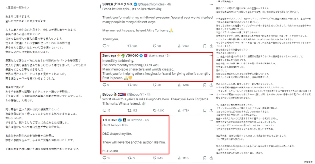 Creator of “Naruto”, Masashi Kishimoto thanked Toriyama for his guidance and for giving him confidence in creating his works. “For me, he was the god of salvation and the god of manga,” he shared in a quote to Shonen Jump.