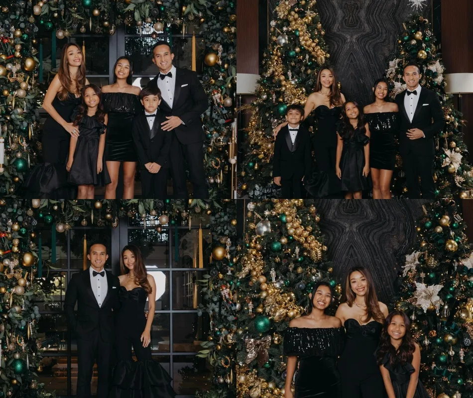 Former television host Marion Caunter posted photos on Instagram of her family celebrating Christmas over the long weekend. Everyone, including her husband entrepreneur SM Nasarudin, were dressed up all fancy in black tie attire and happily posed in front of the two large Christmas trees at their home.