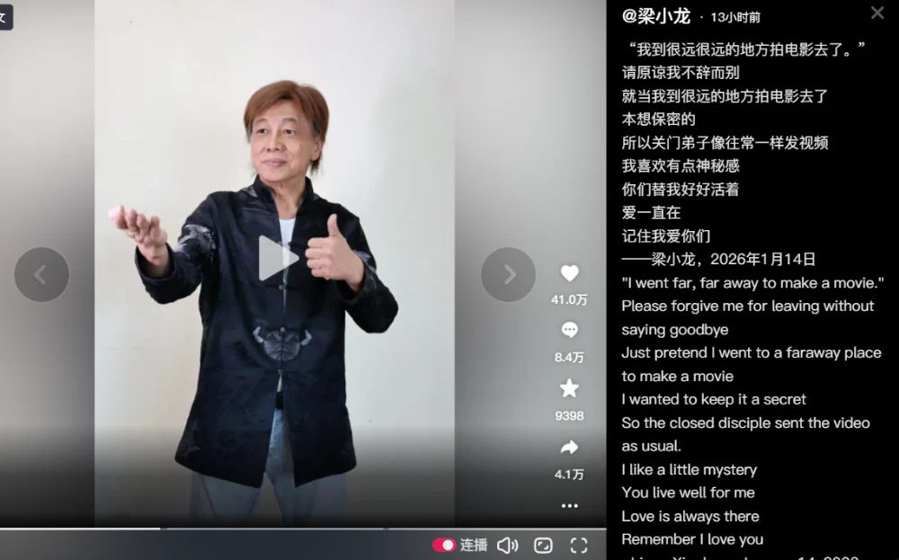 Following the news of his death, a poignant post emerged on Bruce’s Douyin account. The post appeared to be his final message prepared for his fans. The message reads, “Please forgive my abrupt departure. Just consider it as me going to a very far place to film a movie. I wanted to keep it a secret, so my closed-door disciple is releasing a video as usual.”