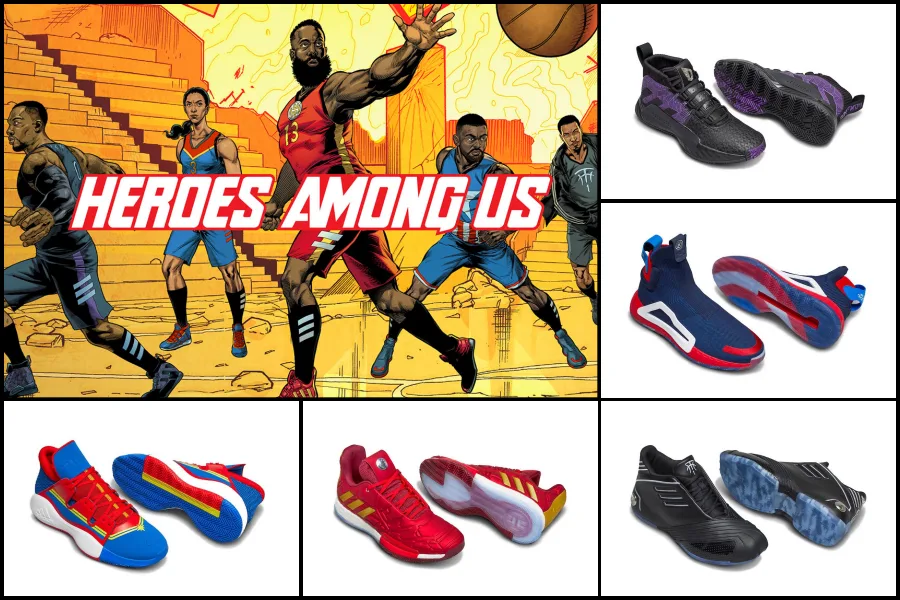 The Marvel x adidas Basketball “Heroes Among Us”collection consists of:-