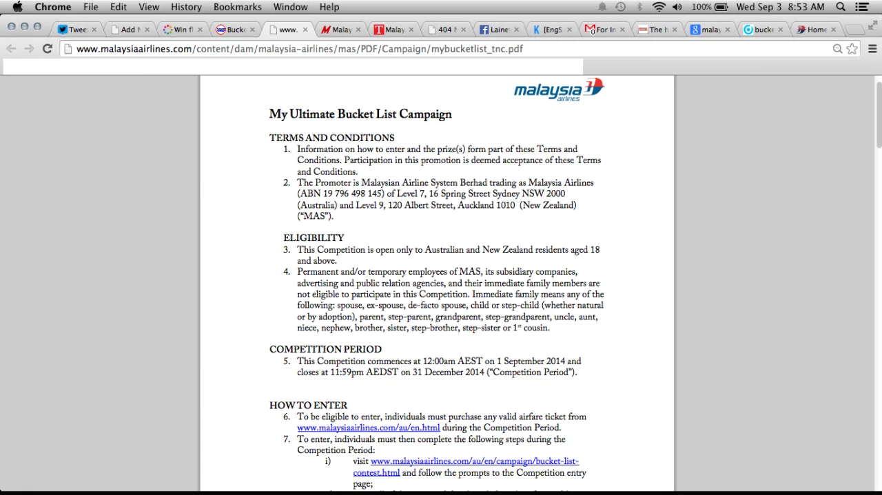 As such, the “My Ultimate Bucket List” campaign appears to have been withdrawn, with the original competition link now leading to a 404 error page. What’s left behind, however, is a PDF of the competition’s terms and conditions, which can still be found here.