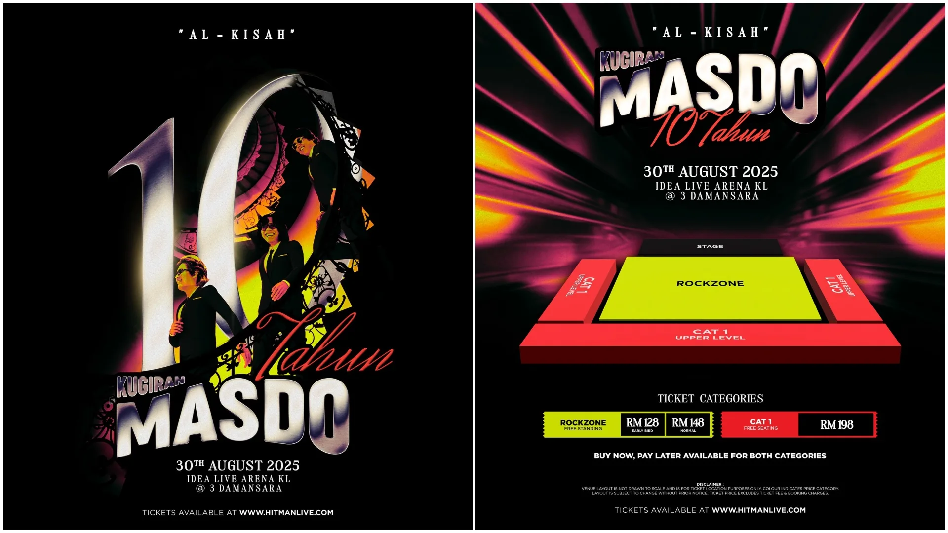 ‘Al-Kisah Masdo Sepuloh Tahun’ is supported by Warner Music, ERA, Sinar, Gegar, Astro Gempak, and the official venue, Saloma Kuala Lumpur.