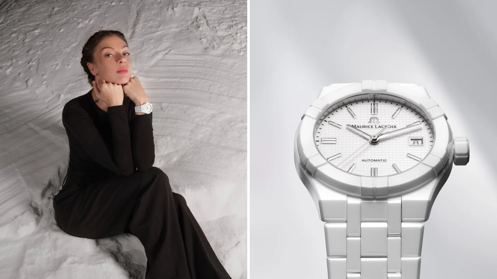 Maurice Lacroix has once again proven its mastery of contrasts with the new AIKON Automatic Ceramic. Available in two colours—matt black and glossy white—the watch offers something for every personality. The 42mm black version embodies an urban, stealthy vibe perfect for evening wear, while the 39mm white reference exudes an angelic presence in the daylight, effortlessly attracting attention.