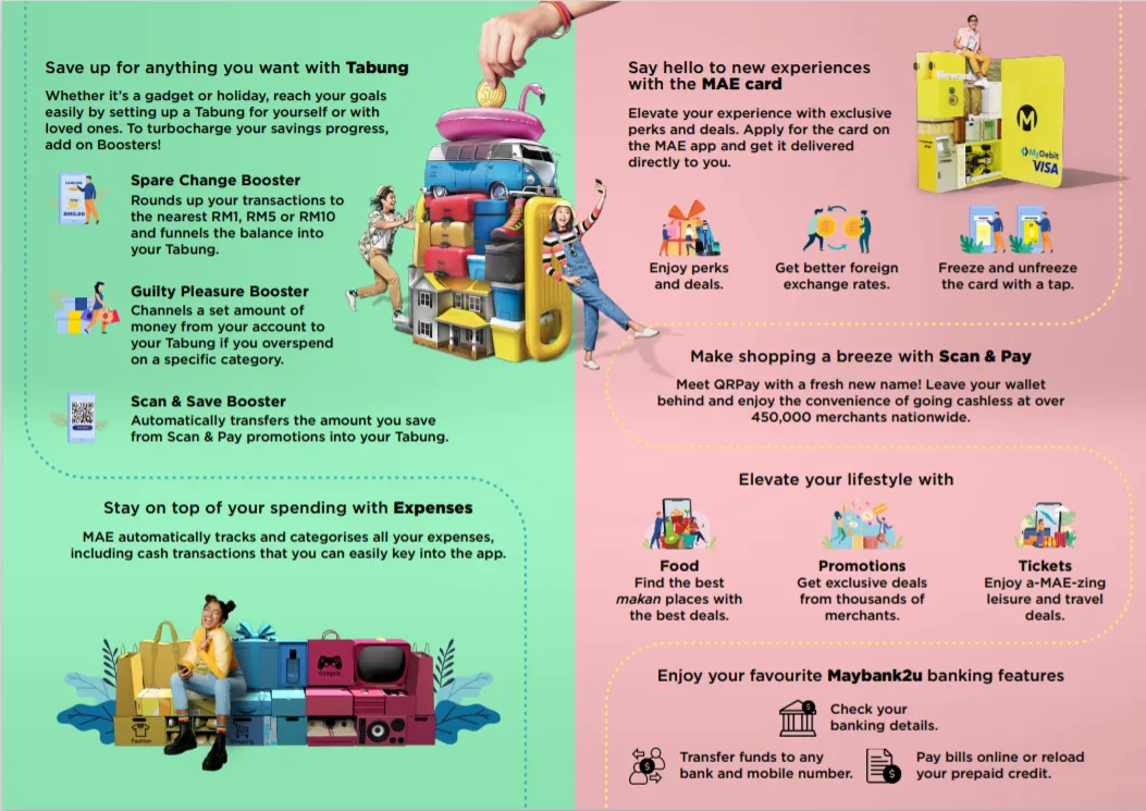 MAE was originally an e-wallet that was integrated into the Maybank2u app. However, the purpose of this new app is not just for cashless transactions, but it is also meant for facilitating everyone’s regular banking needs with new and exciting features that help customers better manage their finances.