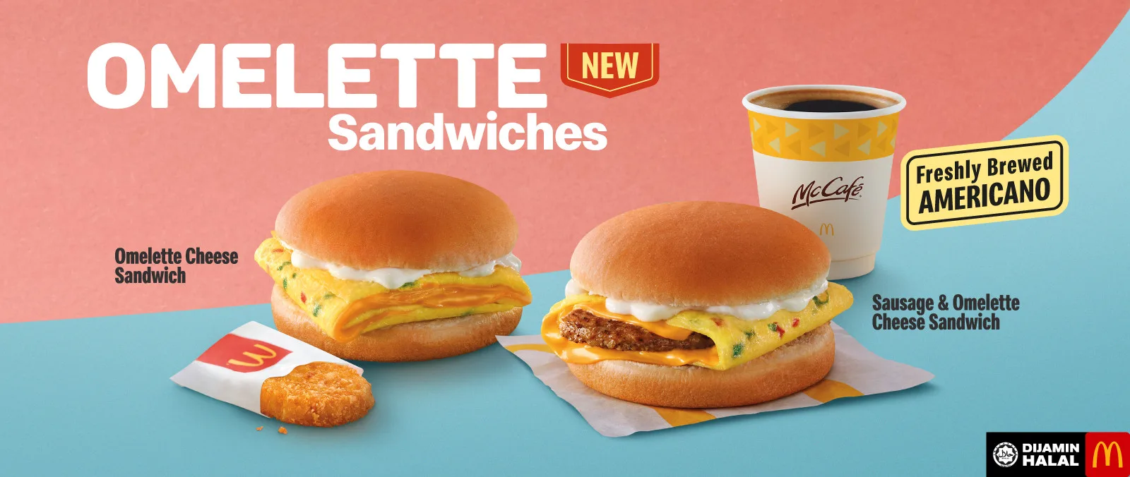 Of course one should always start the day off with a satisfying breakfast and the new egg-stremely delicious Omelette Sandwich is something we’d like to wake up to. Opt for either the Omelette Cheese Sandwich or the Sausage & Omelette Cheese Sandwich, and pair it with golden hash browns and freshly brewed Americano.
