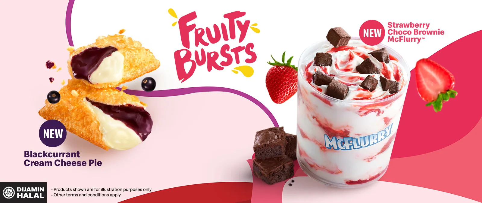 If there’s something we always have room for – it’s desserts. This month, the new Strawberry Choco Brownie McFlurry (RM7.08) and Blackcurrant Cream Cheese Pie (RM5.19) are 2 amazing sweet treats bursting with delicious fruity flavours.