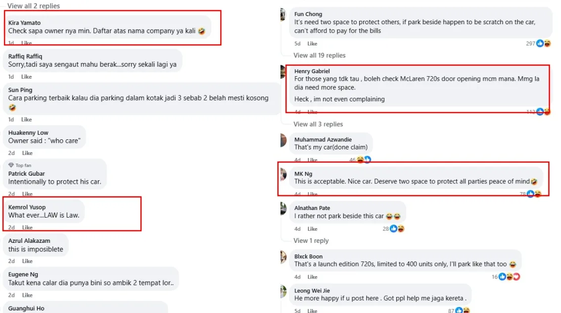 Some suggested that the driver and their passengers would need more space to exit the vehicle, as it has gullwing doors, which open upwards like wings. Others speculated that the owner likely didn’t want to risk accidentally hitting or scratching other cars and preferred to avoid others doing the same, knowing how expensive their car is. If you’re curious, a McLaren 720S model can cost up to RM2.6 million, depending on the variant, according to WapCar. On Carlist, on the other hand, it can cost up to RM2.3 million, depending on the variant as well.