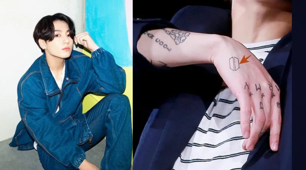 He also has BTS’s debut date (13th June / 0613) tattooed under his right hand thumb. The purple heart situated nearby the tattoo symbolises Jungkook’s everlasting love for his members and fans. Awh, that’s very sweet!