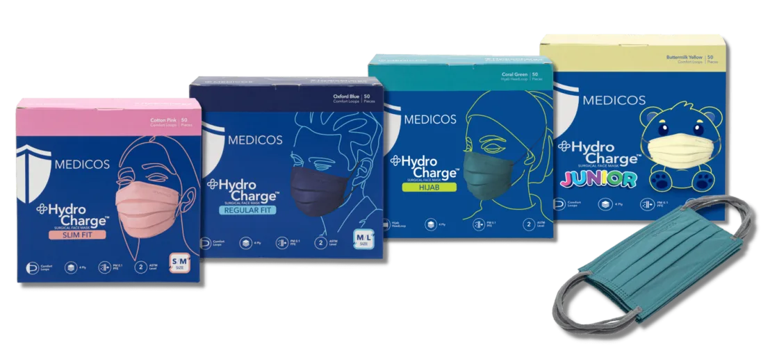 The government has eased many COVID-19 SOPs rules but wearing face masks indoors is still mandatory. This is where Malaysia’s leading and premier face mask manufacturer MEDICOS comes in. They are introducing the new HydroCharge Surgical Face Masks for all types of consumers.