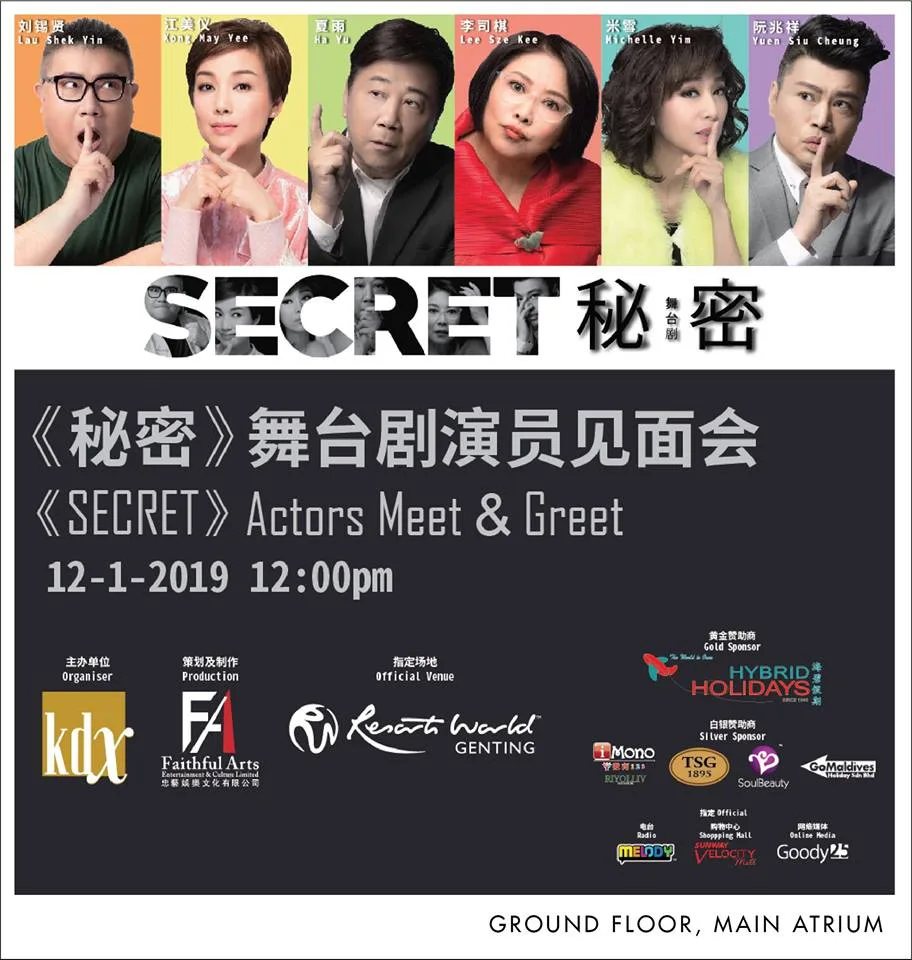 This dynamic team of actors will come together for “Secret” (秘密) stage play which is set to take place at Arena of Stars in Resorts World Genting on 30th March 2019, 8.30pm.