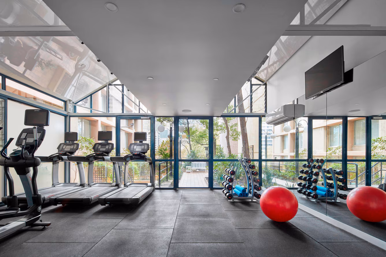 For something even more relaxing, the sauna, and jacuzzi are right there to melt away any lingering work stress. And if you’re committed to your workout routine, the fitness centre is equipped to keep you on track, with everything from cardio machines to weights in a bright and clean space.