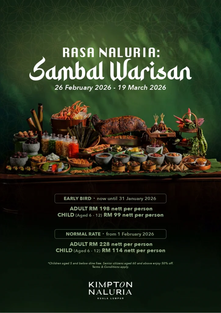 This festive season, Kimpton Naluria Kuala Lumpur invites guests to experience its vibrant multicultural tapestry through a scrumptious buffet spread at Tuai + Till, an all-day dual-dining farm-to-table venue with Malaysian and Western flavours. Running from 26th February to 19th March 2026, the enticing Rasa Naluria: Sambal Warisan seasonal dining experience celebrates sambal as the star of the table, not as a side condiment, but as the main storyteller of the meal.