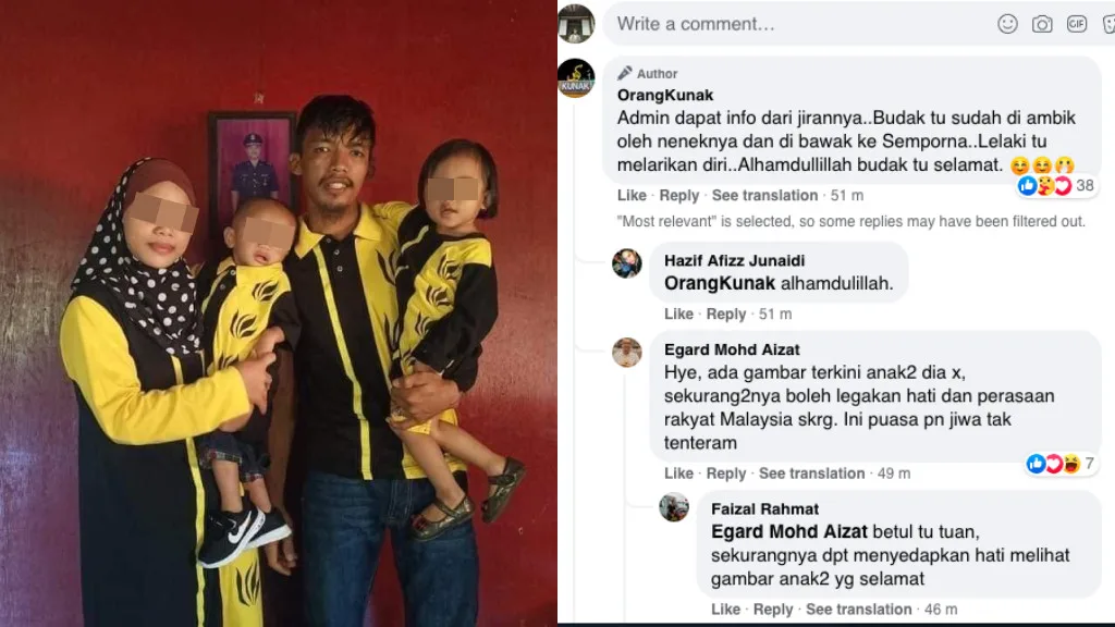 The admin from Orang Kunak’s Facebook received word from a neighbour that the man had fled the scene. Police are now reportedly on the lookout for him. Thankfully, the kids are now with their grandmother.