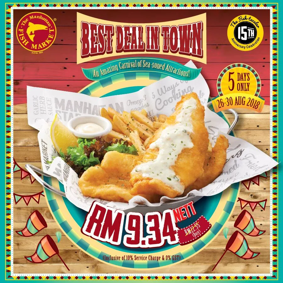 The Best Deal In Town is swimming back to The Manhattan Fish Market. During the 5 days promo, you can enjoy the signature Manhattan Fish ‘N Chips from only RM9.34 nett (inclusive of 10% Service Charge & 0% GST). Take your pick from Dory, Cherry Snapper, Giant Clarias, Icefish, Squid Crowns or Salmon. There are 2 cooking methods to choose from – Fried (comes with chippy chips & house salad) or Grilled (comes with pepper mash & hot veggies).