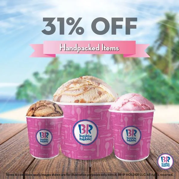 As usual, on the 31st of each month, Baskin Robbins has a 31% promo off their ice creams. Well, guess what? This promo is 3 days long from 29th till 31st August. The offer is applicable only for their handpacked ice cream, no matter the size (pints, quarts, and half-gallons) and flavour, in all of their outlets.