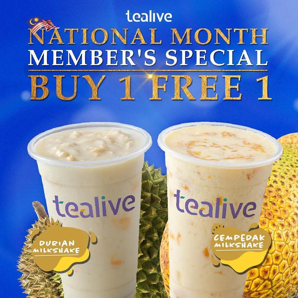 In celebration of our National month, Tealive has rolled out 2 creamy Buaharaja milkshakes – the Durian and Cempedak flavours. Available only at selected outlets, the promo ends on 31st August.