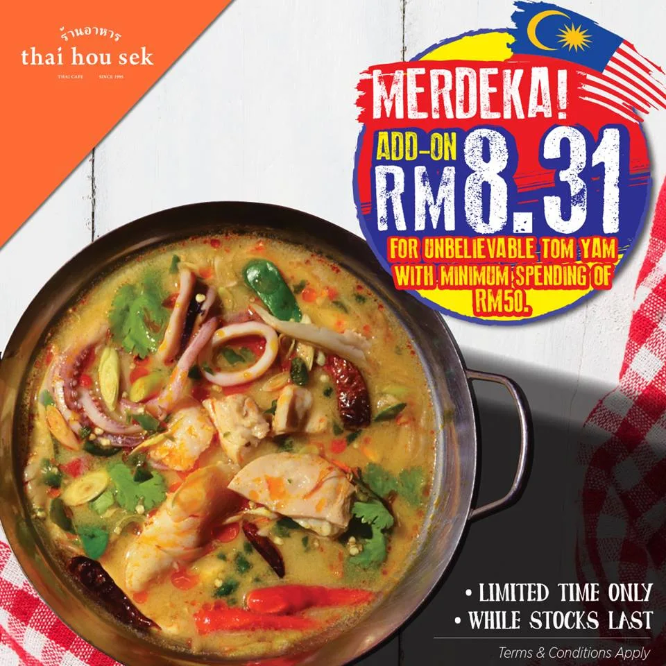 Thai Hou Sek Malaysia is encouraging you to come with your friends and family during this promo season. For a minimum spending of RM50 in a single bill, diners can add on RM8.31 for another serving of Tom Yam goodness.