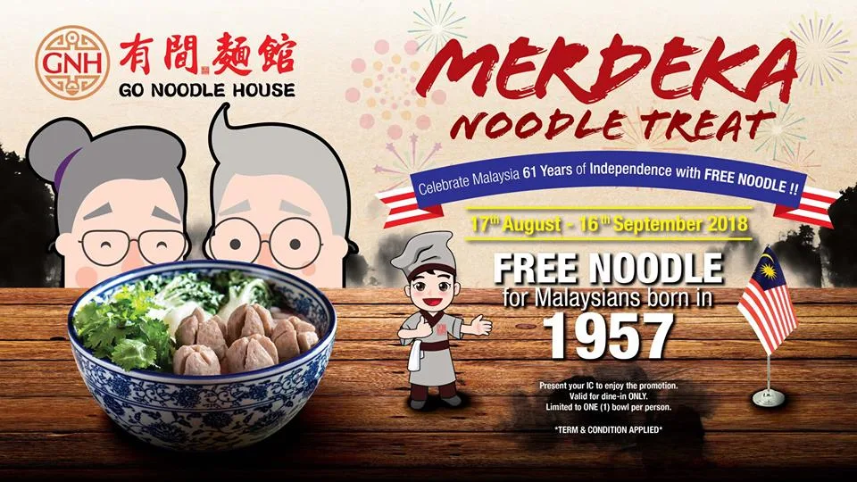Congrats to all 61-year-old babies! If you were born in 1957, you’ll get to enjoy a free bowl of noodles (selected options) courtesy of GO Noodle House. This offer is available for 1 whole month! Simply present your IC upon ordering to enjoy a free meal. Do note that it’s only limited to 1 bowl per person and valid for dine-in only.
