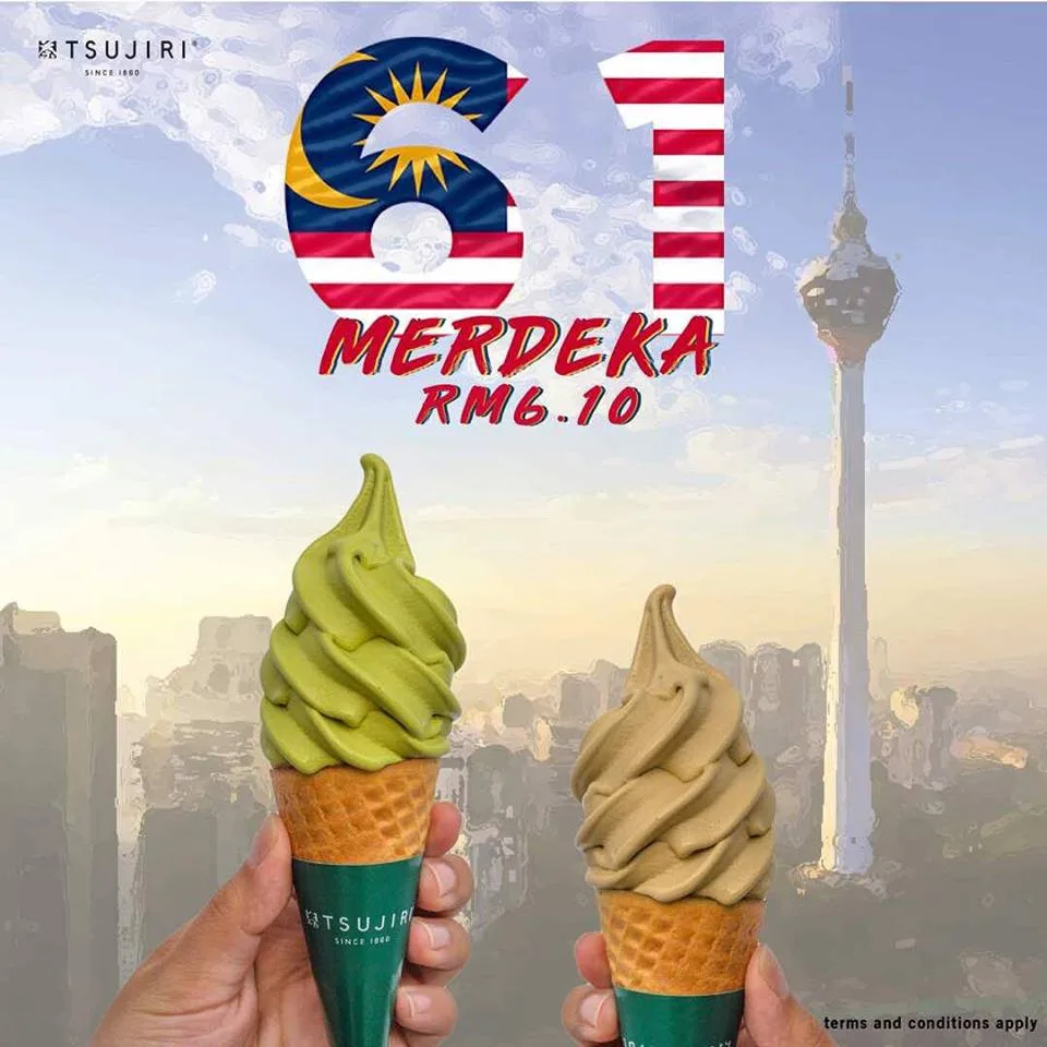 It’s the battle of the ice creams as Tsujiri Malaysia will also be offering ice cream lovers a discount on their Matcha and Houjicha soft serves. It’ll be priced at RM6.10 in conjunction with Malaysia’s 61st birthday.