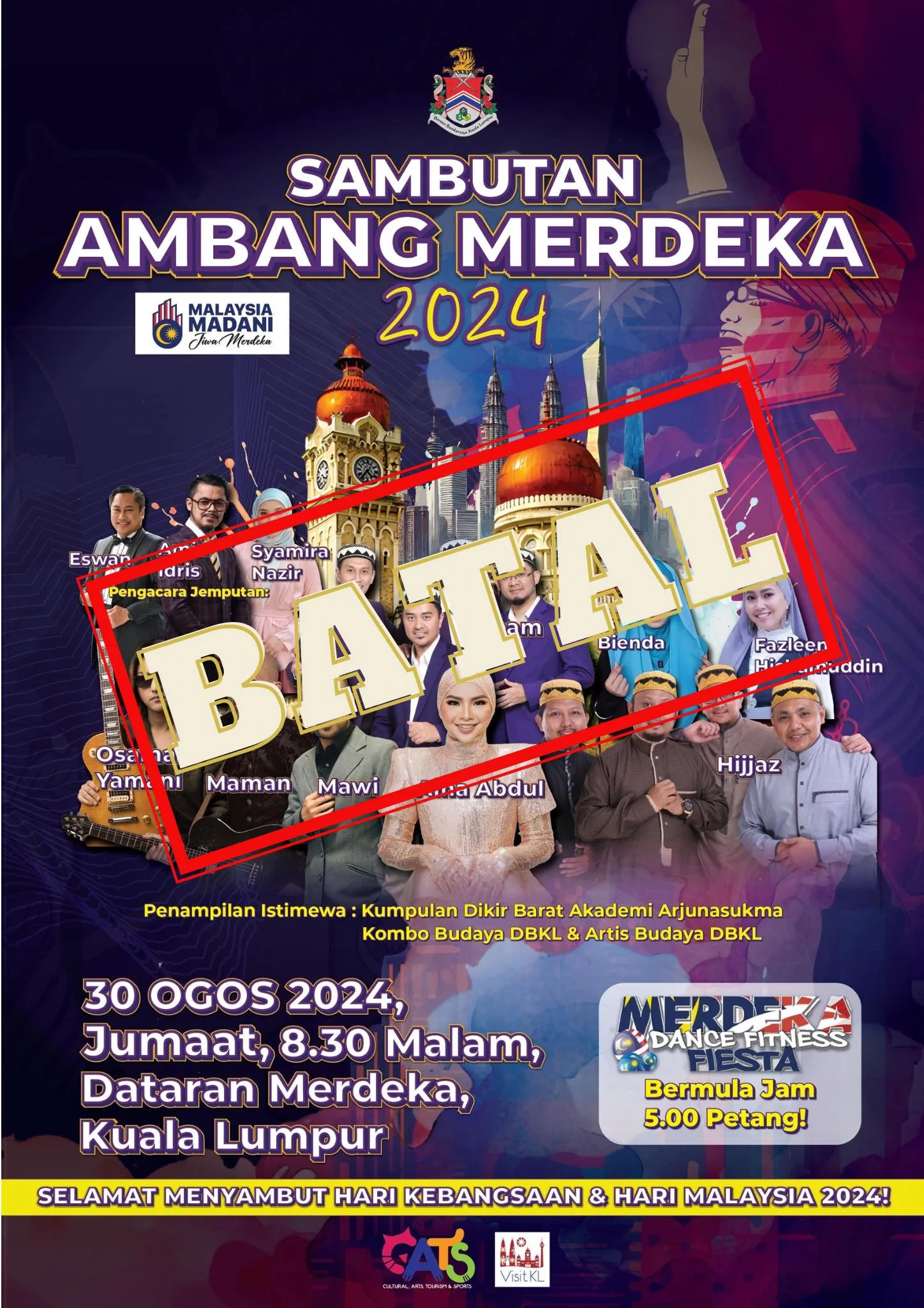 This Merdeka Eve celebration was supposed to take place tomorrow night (Friday, 30th August), at Dataran Merdeka but sadly, plans have changed. Last night (Wednesday, 28th August), the Kuala Lumpur City Hall (DBKL) issued an official statement to announce that the Merdeka Eve celebration is now cancelled. Here’s why:
