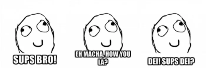 Pretty much a way of greeting or calling each other. Like how girls call each babe, guys call each other bro, macha and/or dei in Malaysia. Also, Malaysians tend to shorten our sentences. For example, instead of asking someone “How are you?”, we say “How you?”. For effect, you can even add a “lah” to the end of that sentence. Like, “How you lah?”
