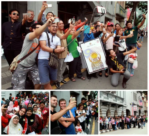 As many as 700 participants waited in line that snaked all the way from Coliseum Theatre until the Sogo mall in Jalan Tuanku Abdul Rahman in Kuala Lumpur. The event, organised by YIM (an agency under the Ministry of Science, Technology and Innovation), aimed to break the previous record of 421 selfies taken in an hour. It was a world record that was set by Canadian actress Melinda Shankar in 2013.