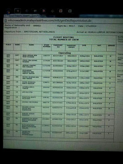 - The names of the MH17 crew members who were on board at time of crash have been confirmed and released: