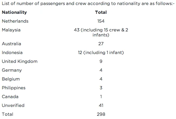 - Vice President of Malaysian Airlines Europe Huib Gorter revealed that 154 passengers are from the Netherlands, while 26 Malaysian were also reportedly on board aside from the crew.