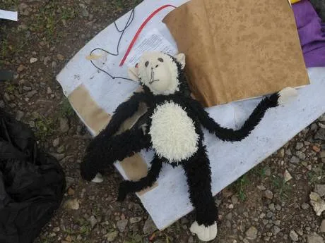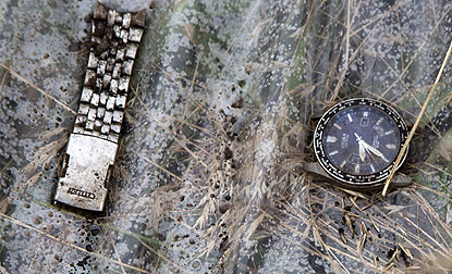 While the items were painstakingly recovered by the emergency crew, fire fighters have to make their way through the wreckage and comb through debris stopping here and there to plant sticks tied with white rags/flags to identify the location of some of the 298 victims.