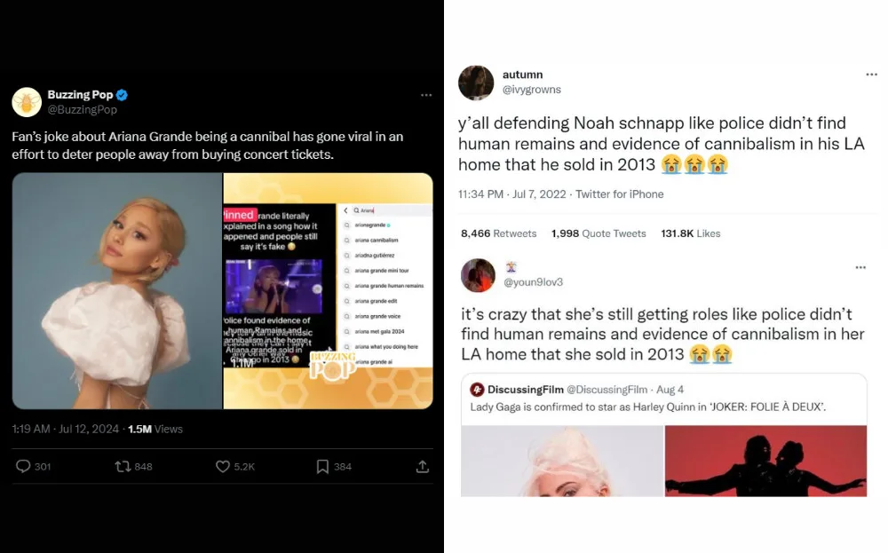 A bizarre and unfounded rumour about Ariana Grande being involved in cannibalism went viral on TikTok. The story originated from a copy-paste meme and was further fueled by conspiracy theorists. Despite its outlandish nature, the rumour gained serious attention, illustrating how extreme misinformation can spread.