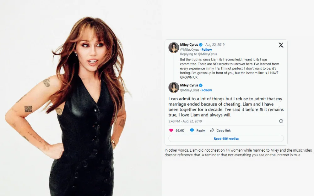 After Miley Cyrus released her breakup song “Flowers,” a rumour emerged claiming she was cheated on by her ex with 14 women. This story gained traction from a viral Twitter post but lacked legitimate sources. The singer had already addressed similar rumours in 2019, and this particular story was dismissed as speculative gossip.