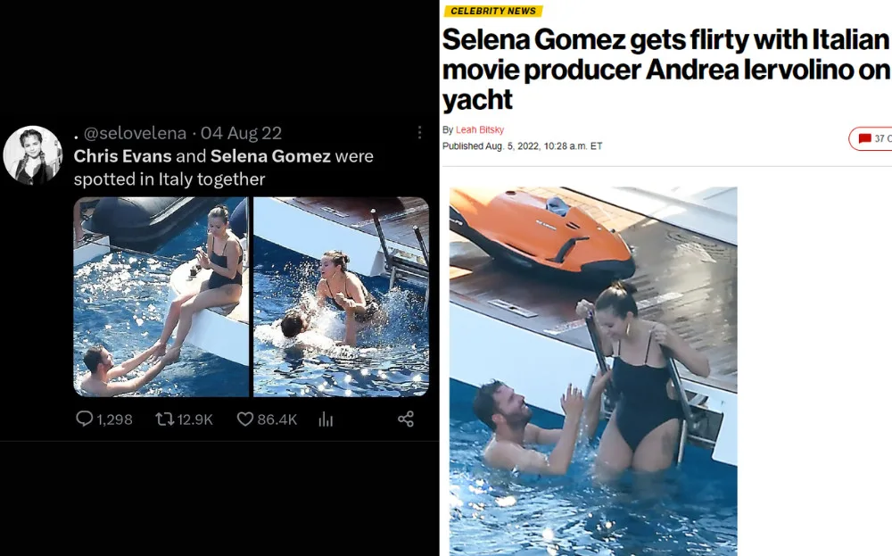 A false narrative claiming Selena Gomez was dating Chris Evans circulated widely after a mix-up involving movie producer Andrea Iervolino. The rumour was based on a misunderstanding and fan speculation. Both Selena and Chris have since clarified the misinformation, but the rumour continued to gain traction through unreliable sources.
