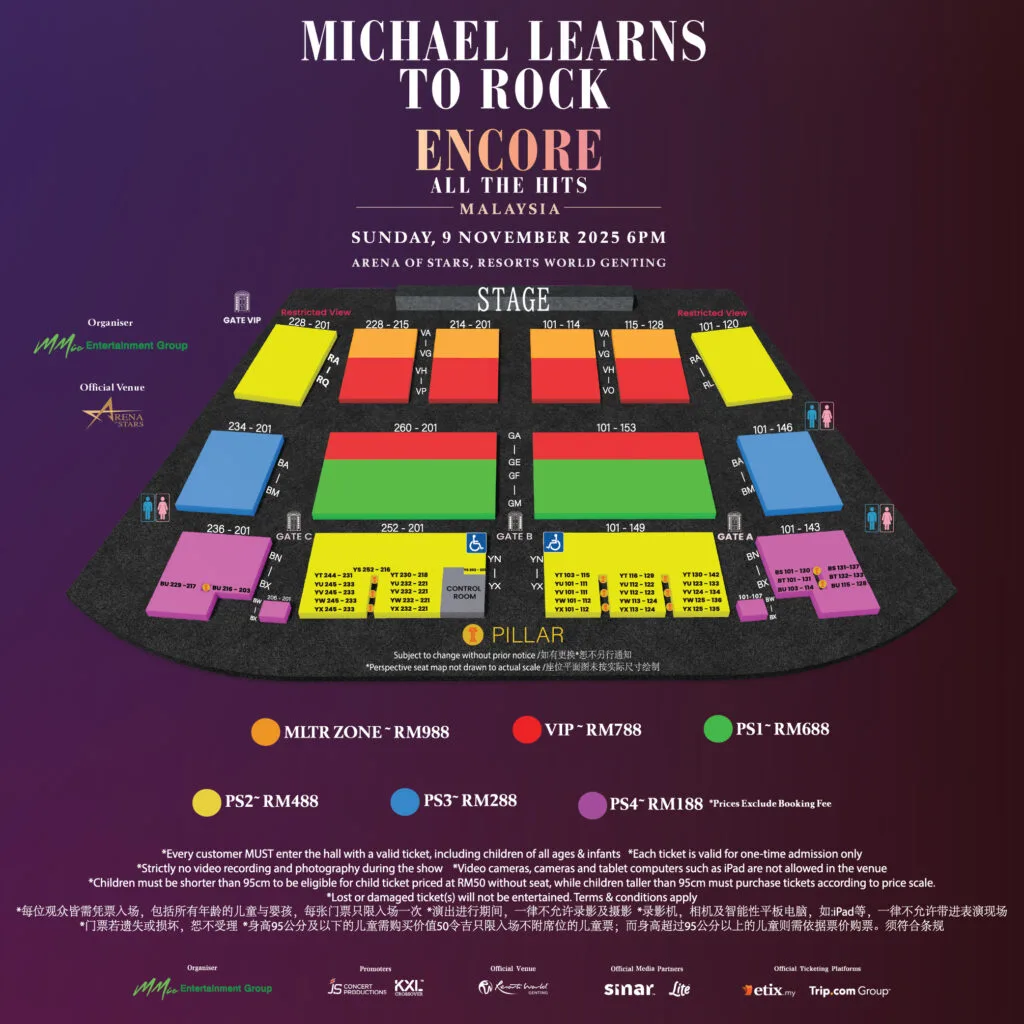 Organised by MMIC Entertainment Group and JS Concert Productions, Michael Learns To Rock will serenade fans in Malaysia with their “Encore All The Hits” concert. The show will take place on 9th November 2025 (Sunday) at Arena of Stars, Resorts World Genting. Tickets will go on sale on 8th August 2025 (Friday). Genting Rewards members can also get their tickets earlier with the pre-sale, happening on 4th August 2025 (Monday).