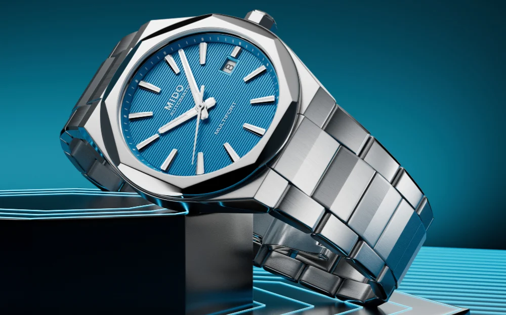 Eight angles, eight facets, a unique style. In the Multifort 8 One Crown, MIDO has created a visionary watch alive with urban energy. A geometric aesthetic and state-of-the-art watchmaking technology come together in a contemporary design built for the city. Eight facets echo each other around the bezel, crown and screw-down case back. The satin-finished and polished steel creates a stunning play of light. The bright blue dial features an eye-catching horizontal motif.
