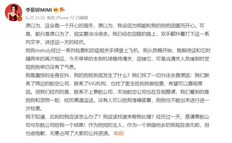 “I was shaking in shock,” MiMi shared on her Weibo. “What the hell happened to my dog?” The 22-year-old added that they exhausted every means of finding the truth. “We contacted the airlines on both sides, the MG agency and (even) asked a doctor to examine (my) dog, hoping to find out (what happened),” she said.
