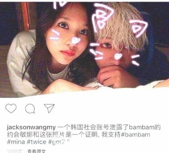 The photo of the pair was titled “BamBam Mina Dating Leaked Photo”, and is circulating on various Korean online community sites. This caused dating rumours to arise due to the extremely cosy nature of the photo.