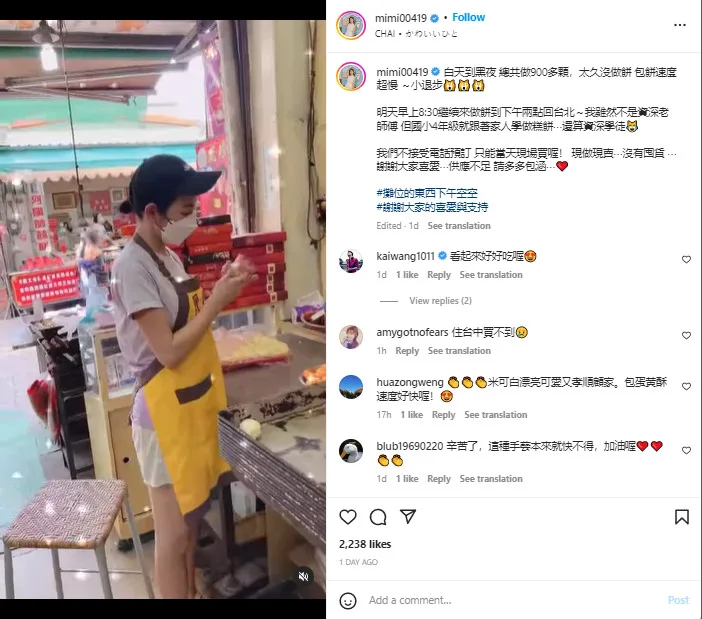 The actress recently shared that she’s in her hometown Changhua, helping her family with their cake store. Mini said that she’s back as the Mid-Autumn Festival is coming. “From day to night, I make more than 900 cakes in total,” she added. “I haven’t baked cakes in so long. My cake-making speed is super slow and I’m a little backwards.” However, there’s no denying her skills and dedication to the craft. Mini claims she may be out of practice, but she’s still good enough to be considered a “senior apprentice”.