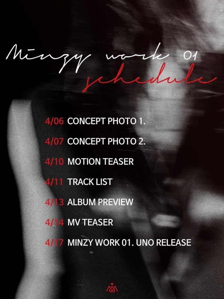The singer’s 1st mini-album, “MINZY WORK 01 UNO”, will be released on 17th April at 12pm KST (11am Malaysian time)