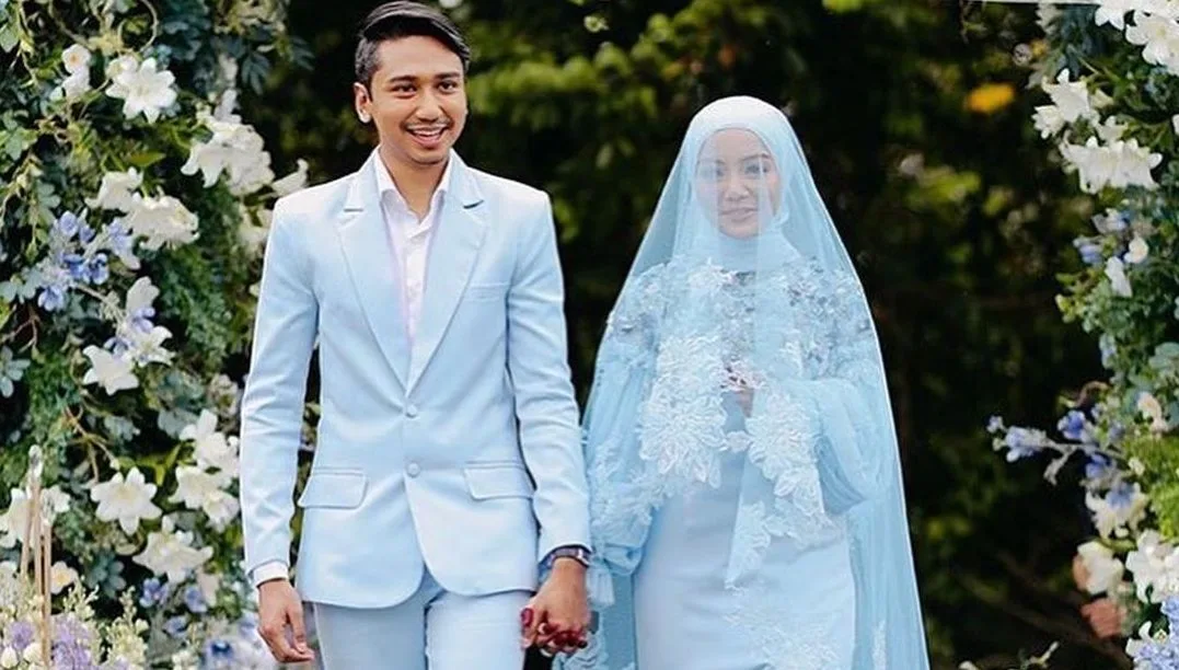 Mira Filzah wowed fans with her stunning powder blue wedding pants dress worn during her wedding reception held at A-Park garden wedding hall in Puchong over the weekend.