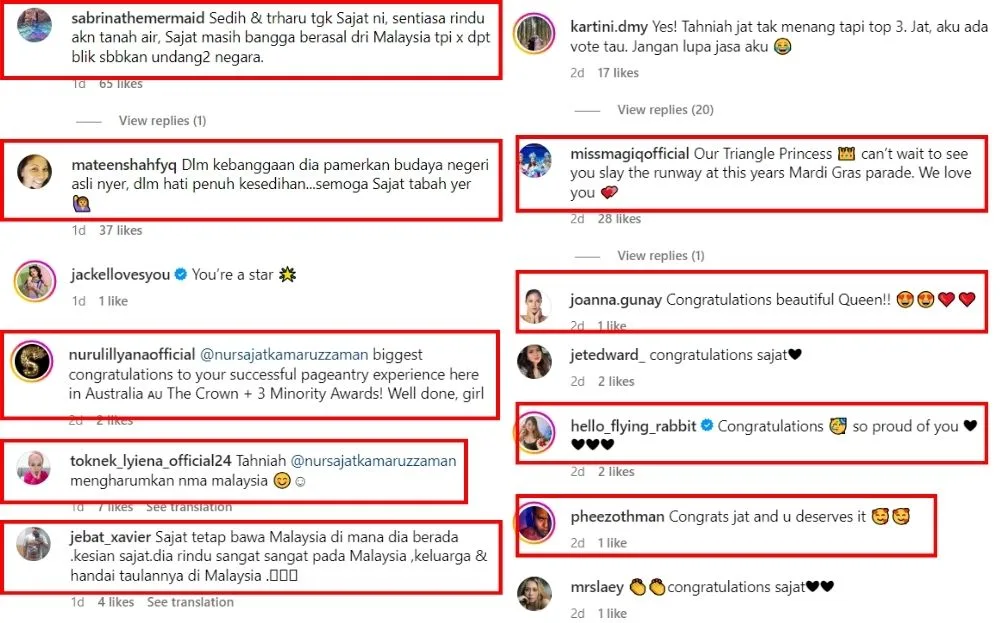 After sharing about her wins, fans and netizens rushed to congratulate the queer icon on her new titles. Many said her two titles were well-deserved since she’s worked so hard for the past few weeks for the pageant. Many also thanked Sajat for proudly representing Malaysia in an international pageant despite constantly being criticised by Malaysians.