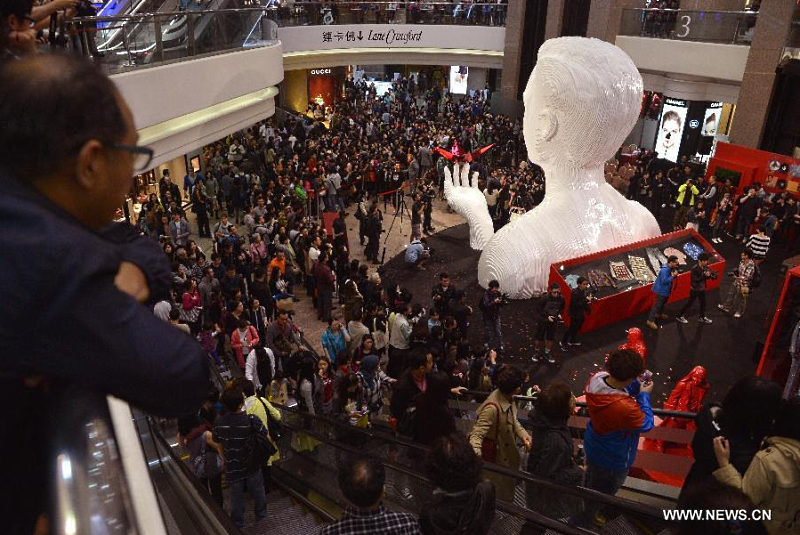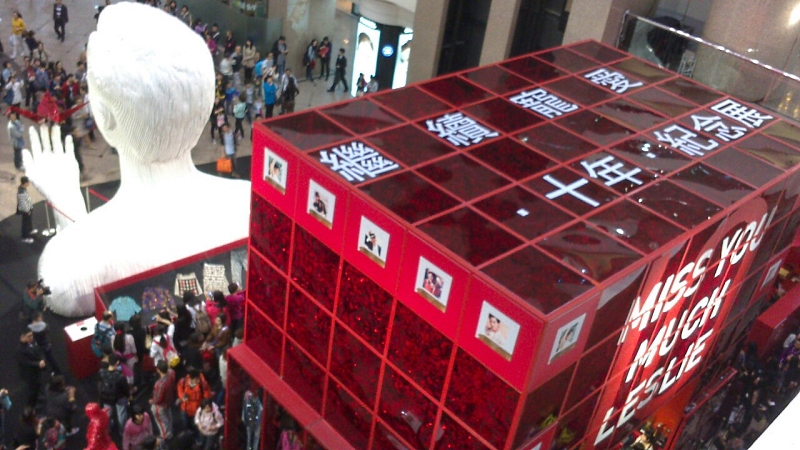 The “Miss You Much Leslie” exhibition also featured designs and themes inspired from Leslie Cheung’s music, stage, and movies, with red as its primary colour. There’s also a five-metre-high sculpture of the late artiste and a giant origami crane in the palm of his hand.