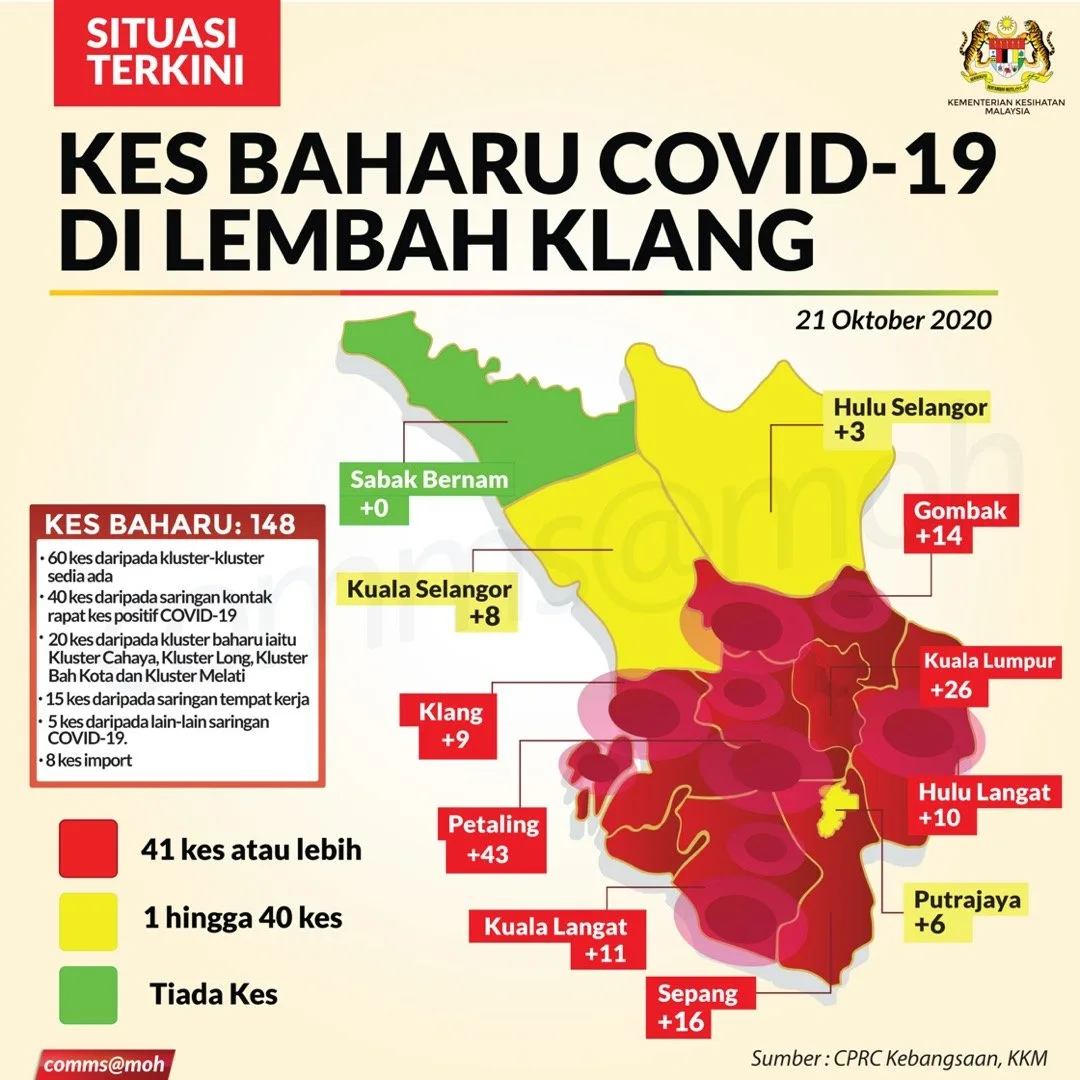 This is based on data provided by the Health Ministry’s Crisis Preparedness and Response Centre (CPRC) from the last 2 weeks (7th October till 21st October). The red zones in Malaysia are located in Kedah, Penang, Perak, Selangor and Sabah.